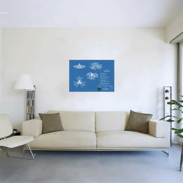 À la manière des anciens plans industriels, ces documents à fond bleu emblématique révèlent les secrets de conception de vaisseaux mythiques issus de la culture geek et vidéoludique. Chaque plan présente plusieurs vues techniques (dessus, profil, face…) accompagnées de détails et données spécifiques à chaque engin : dimensions, propulsion, type de mission, armement, etc.