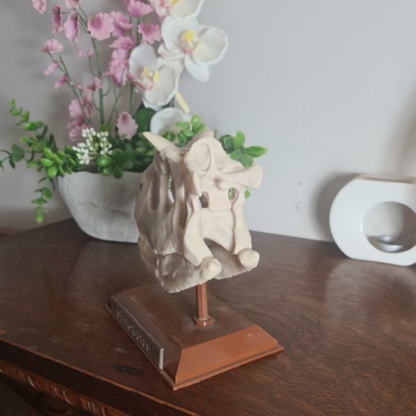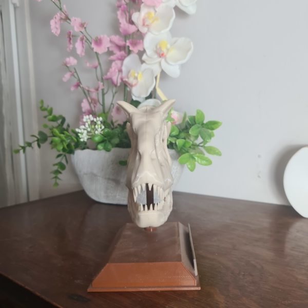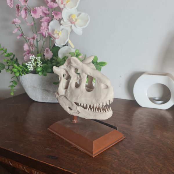 Ce crâne décoratif trouve naturellement sa place dans une collection dédiée aux dinosaures, mais fonctionne tout aussi bien comme pièce unique dans un espace plus moderne. Tu peux l’intégrer dans un décor thématique, l’associer à d’autres animaux préhistoriques ou le placer sur un meuble pour créer un point focal.