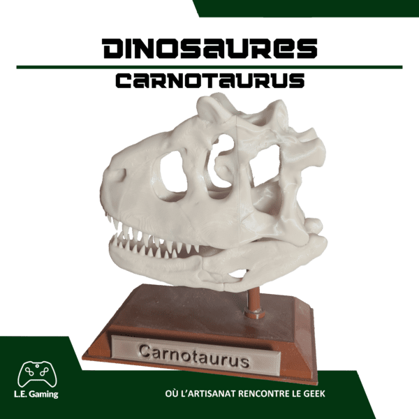 Le crane dinosaure carnotaurus L.E. GAMING 88 est une pièce décorative inspirée du célèbre theropode sud-américain. Ce modèle met en avant les formes caractéristiques de l’animal et apporte une présence forte dans une vitrine, sur un bureau ou sur une étagère dédiée aux objets préhistoriques.