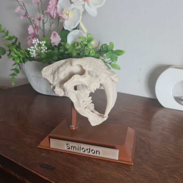 Le Smilodon était un genre éteint de félidés de la sous-famille des Machairodontinae. Son crâne, et en particulier ses canines supérieures démesurées, représente l’adaptation la plus célèbre à une technique de chasse spécialisée. Les répliques mettent en évidence ces caractéristiques anatomiques uniques qui définissent le genre.