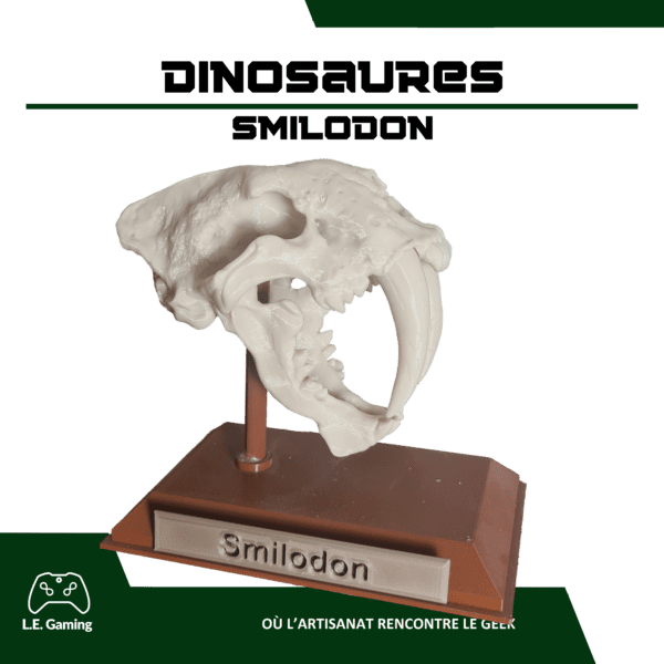 Le crâne dinosaure smilodon L.E. GAMING 88 constitue une pièce décorative inspirée du grand félin préhistorique connu pour ses canines allongées. Ce modèle offre une présence marquée et s’intègre dans une vitrine, sur une étagère ou dans un bureau. L’objet, fabriqué en France, est une reproduction fidèle basée sur la morphologie caractéristique de ce prédateur emblématique du Pléistocène.