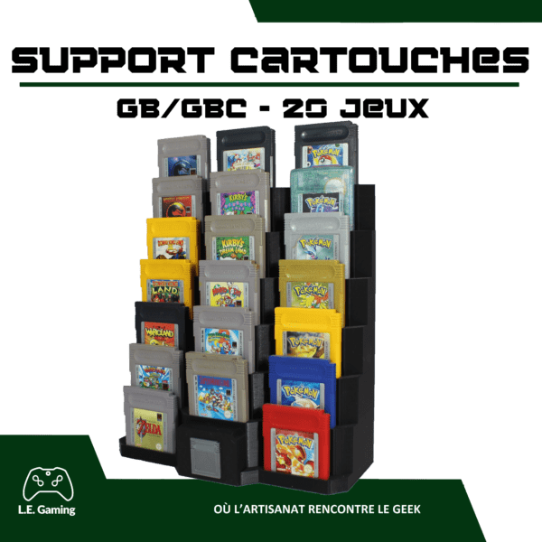 Grâce à sa forme simple et à sa stabilité, il s’intègre dans n’importe quel environnement gaming. Il met en valeur les jeux sans détourner l’attention et reste pratique pour un usage quotidien ou pour une présentation en vitrine. Dernière occurrence placée au mieux : le présentoir 20 cartouches Gameboy optimise la mise en avant et l’organisation d’une collection Game Boy.