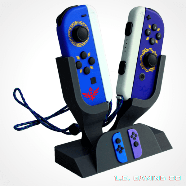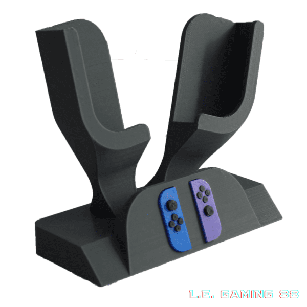 Le support 2 joy-con switch L.E. GAMING 88 te permet de ranger efficacement deux Joy-Con avec leurs dragonnes, tout en gardant un setup Switch propre et parfaitement organisé. Dès que tu poses tes manettes dessus, ton espace gagne en clarté. Ainsi, tes Joy-Con ne traînent plus sur un bureau ou un meuble : ils trouvent enfin leur place.