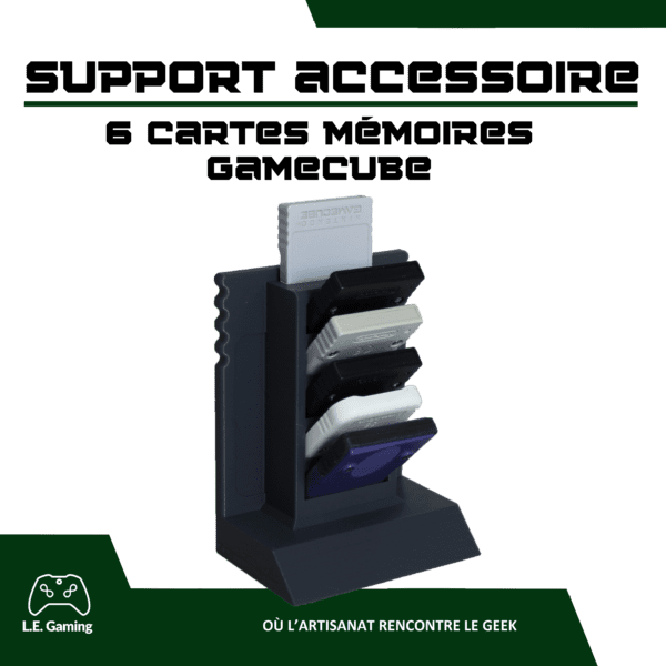 Le support cartes mémoire GameCube L.E. GAMING 88 a été conçu pour offrir une présentation claire, stable et élégante à ces accessoires emblématiques de l’ère Nintendo. Qu’elles contiennent tes sauvegardes les plus précieuses, des parties cultes ou des données que tu conserves depuis des années, les cartes mémoires méritent un présentoir dédié à leur histoire et à leur importance.