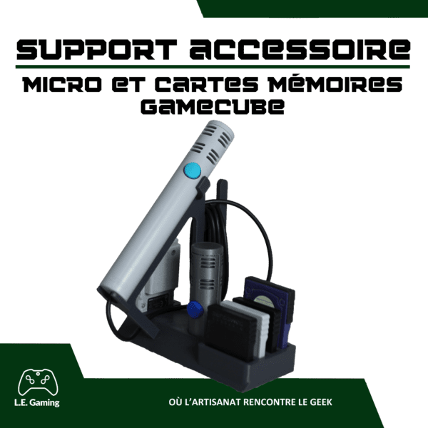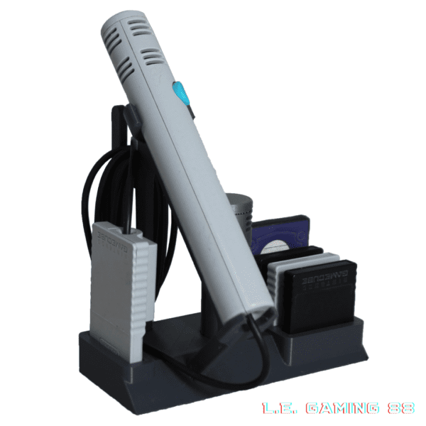 Le micro GameCube fait partie des accessoires les plus singuliers de la console. Certains jeux l’utilisaient pour des mécaniques vocales étonnantes, ce qui en fait aujourd’hui un objet recherché. Grâce à ce présentoir, tu peux mettre en avant cet élément unique. En effet, il transforme un simple accessoire en pièce décorative visible et assumée. Ensuite, il renforce l’identité rétro de ton espace de jeu. Enfin, il te permet de créer une mise en scène harmonieuse autour de ton matériel Nintendo.