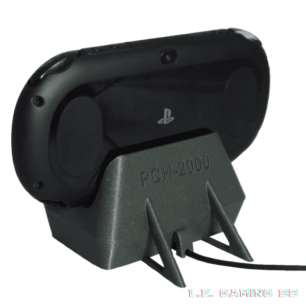 Ce support console PS Vita inclut un emplacement spécialement prévu pour accueillir le chargeur d’origine. Une fois le chargeur glissé dans son logement, il devient possible de recharger la console directement lorsqu’elle est posée sur le support. Ainsi, ton espace reste net, sans câble qui traîne, et tu peux garder la console prête à être utilisée.
