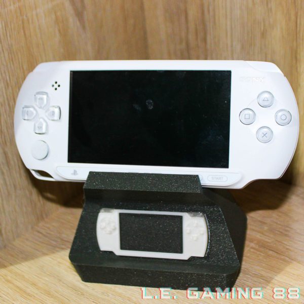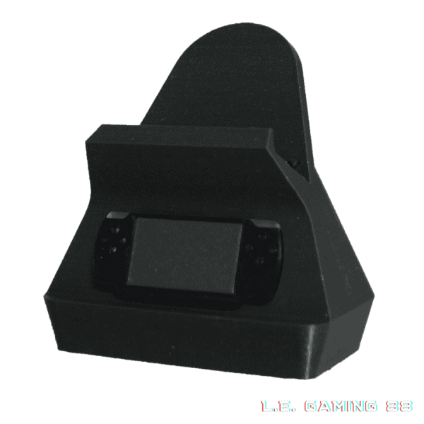 Ce support console PSP place la console en position inclinée afin d’en souligner l’écran panoramique, la façade brillante et la forme caractéristique des modèles PSP. De plus, sa conception assure un maintien stable sans masquer les boutons ni gêner la silhouette de la console. Grâce à son format compact, il se glisse facilement sur un bureau, une étagère ou dans une vitrine. Ensuite, son esthétique épurée s’accorde parfaitement avec les différentes éditions PSP, qu’il s’agisse de la 1000, 2000 ou 3000.